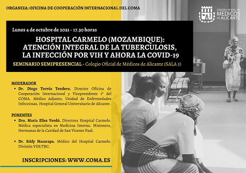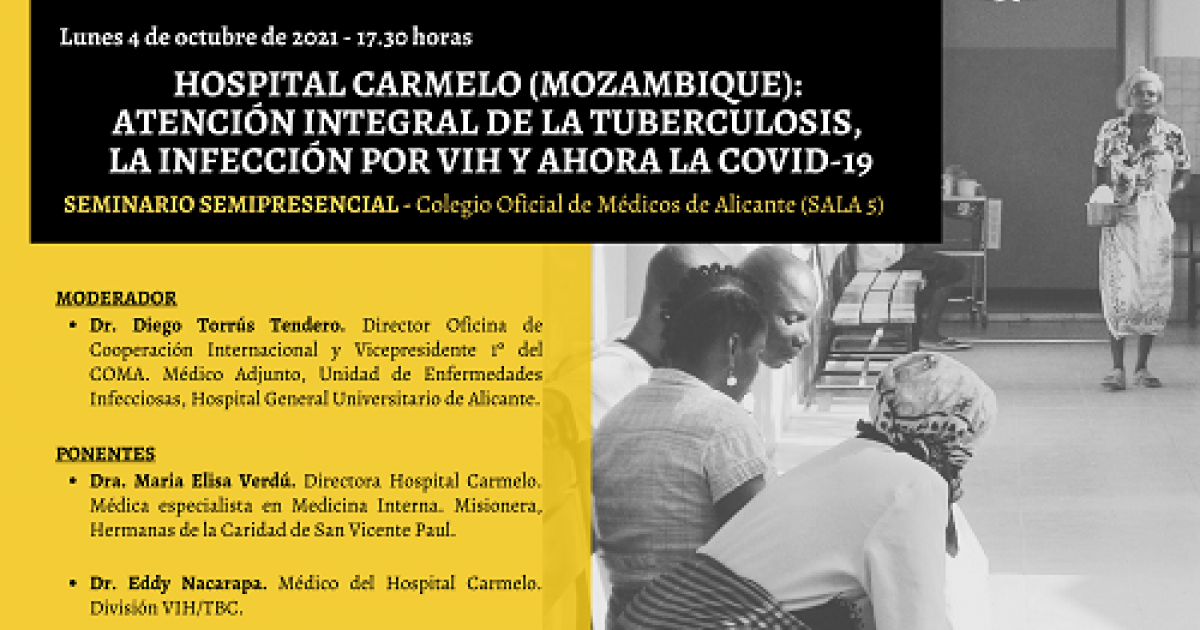 El Colegio Oficial de Médicos de Alicante ha organizado un seminario abierto al público, previa inscripción, donde se expondrá la situación en el ‘Hospital Carmelo (Mozambique): la atención integral de la tuberculosis, la infección por VIH y ahora la COVID-19’