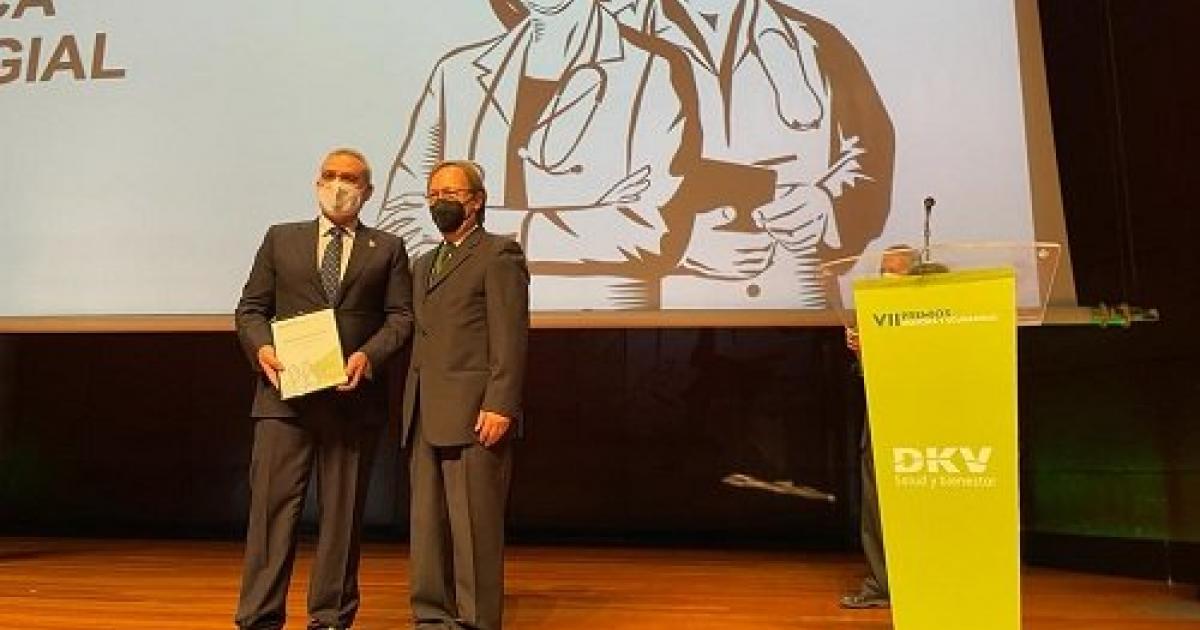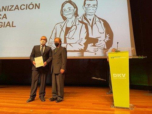 Durante la ceremonia, celebrada en el Museo Reina Sofía de Madrid, Dr. Jose María Rodríguez Vicente, secretario general del CGCOM y de la Fundación para la Cooperación de la OMC, recogió el reconocimiento de manos de Josep Santacreu, consejero delegado de DKV otorgado a la corporación sanitaria por el especial trabajo realizado tanto por sus miembros en activo como por los jubilados durante la pandemia de COVID-19.