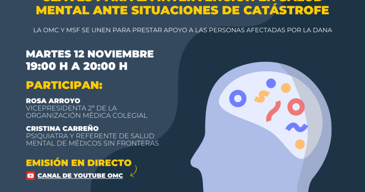 La Fundación para la Cooperación Internacional de la Organización Médica Colegial (FCOMCI) y Médicos Sin Fronteras (MSF) unen fuerzas ante la catástrofe de la DANA en nuestro país a través de un webinar dirigido a los profesionales sanitarios para ofrecer las claves para la intervención en salud mental ante situaciones de catástrofe: ‘Claves para la intervención en salud mental ante situaciones de catástrofe’.